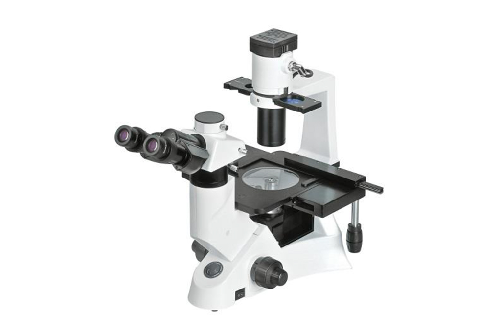 Microscópio biológico invertido, perfeito para análises de biologia e microbiologia.